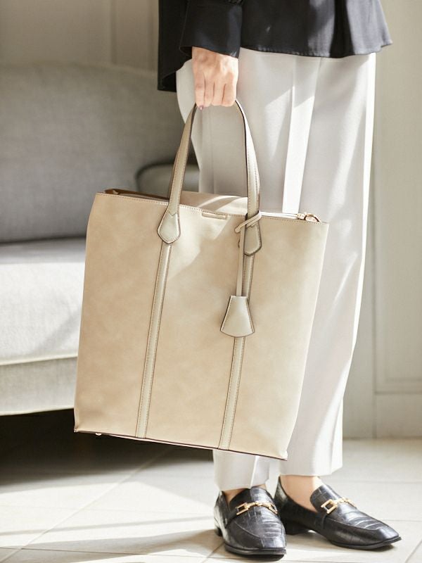 商品コメント:フェイクスエードの裏張り仕様で高見えする、A4トートバッグ。