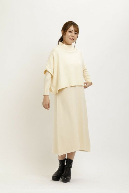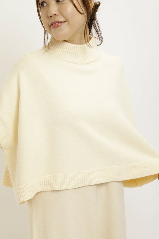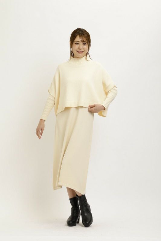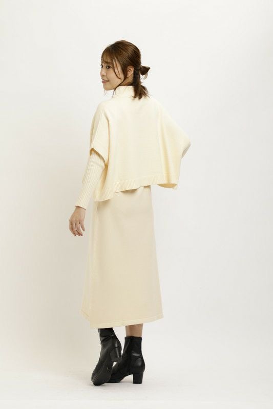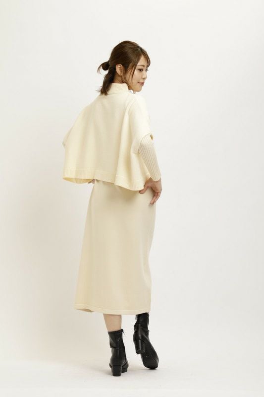 ケープトップスとワンピースがセットになったニットワンピース。