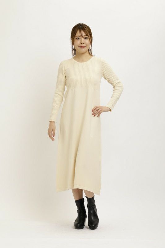 ワンピースは胸下までリブになっており、着痩せ効果も◎
