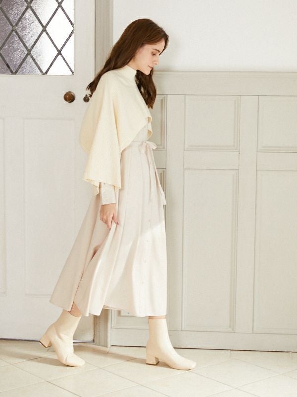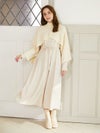 付属のリボンをウエストで結べばがらりと印象を変えて着て頂けます。