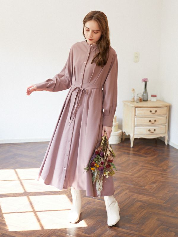 商品コメント:ウエストに施したタックデザインが魅力のシャツワンピース。