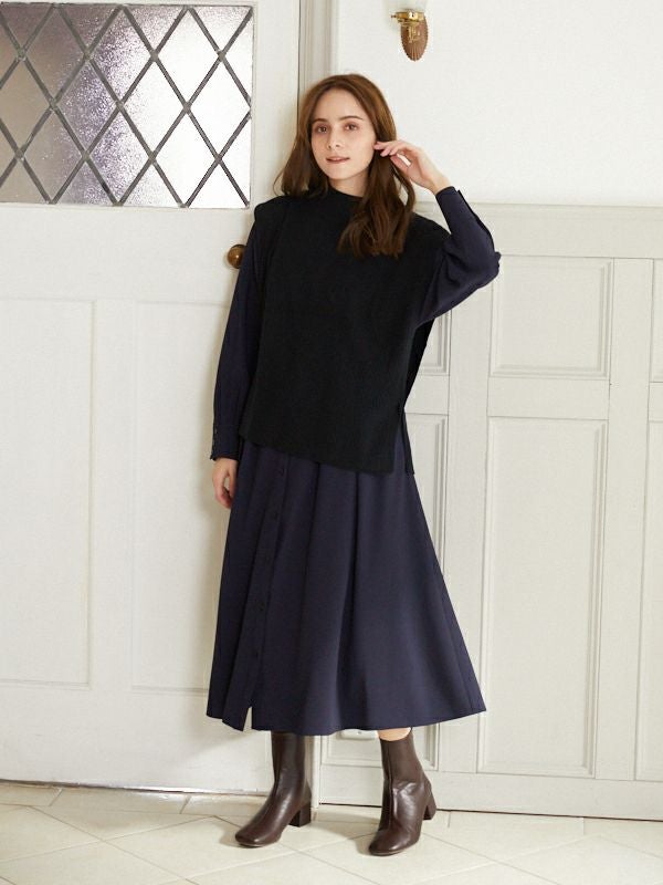 【3WAY】ニットベスト(1R14-09197)を上に重ねてトレンドのレイヤードコーデにするのもおすすめ。