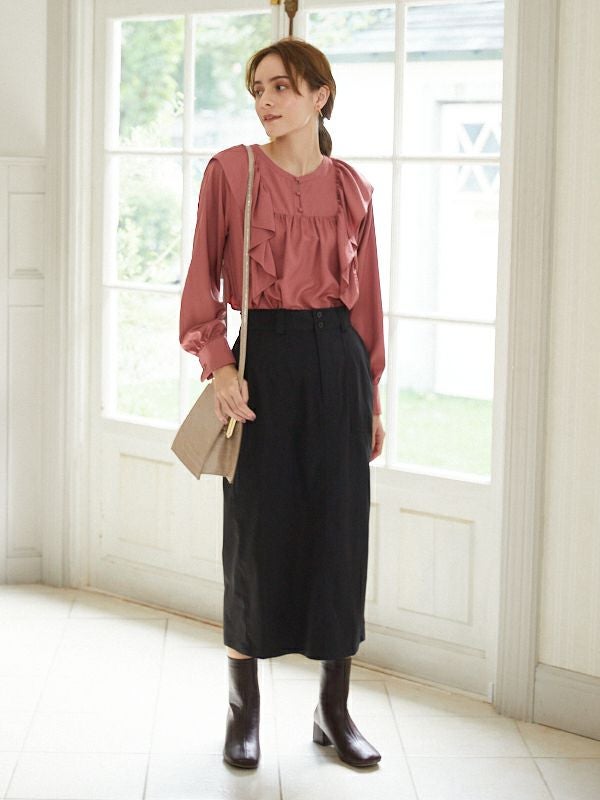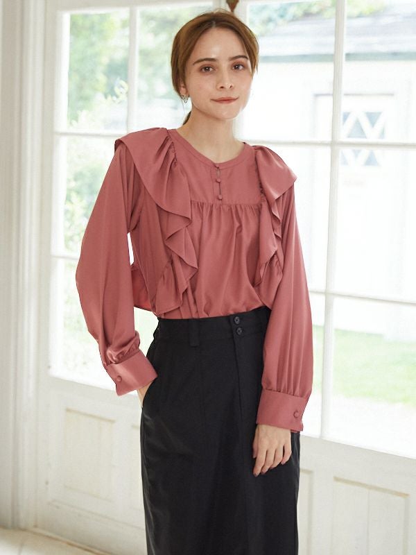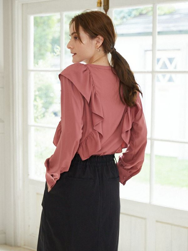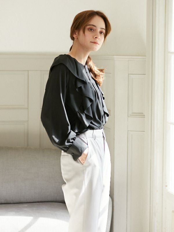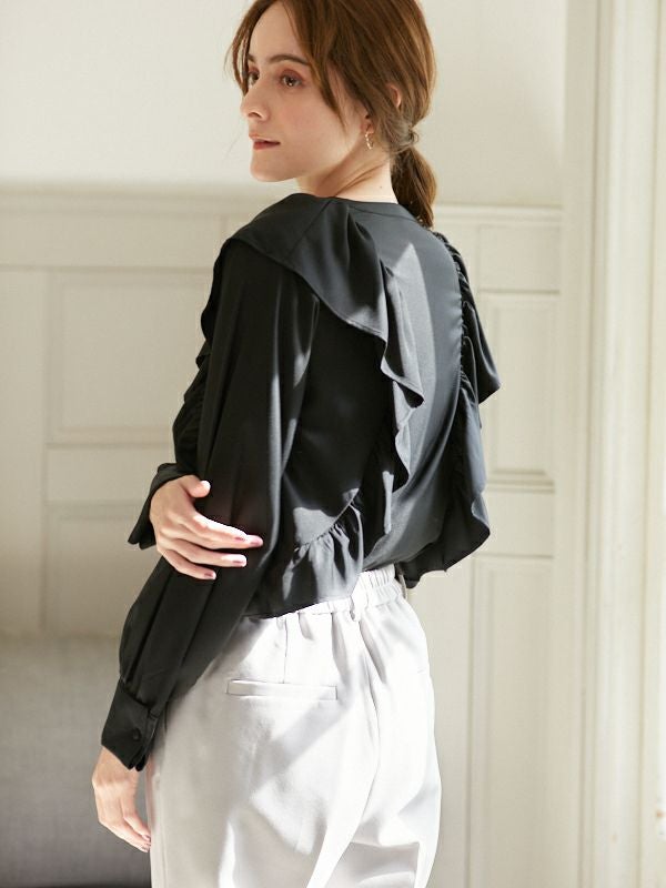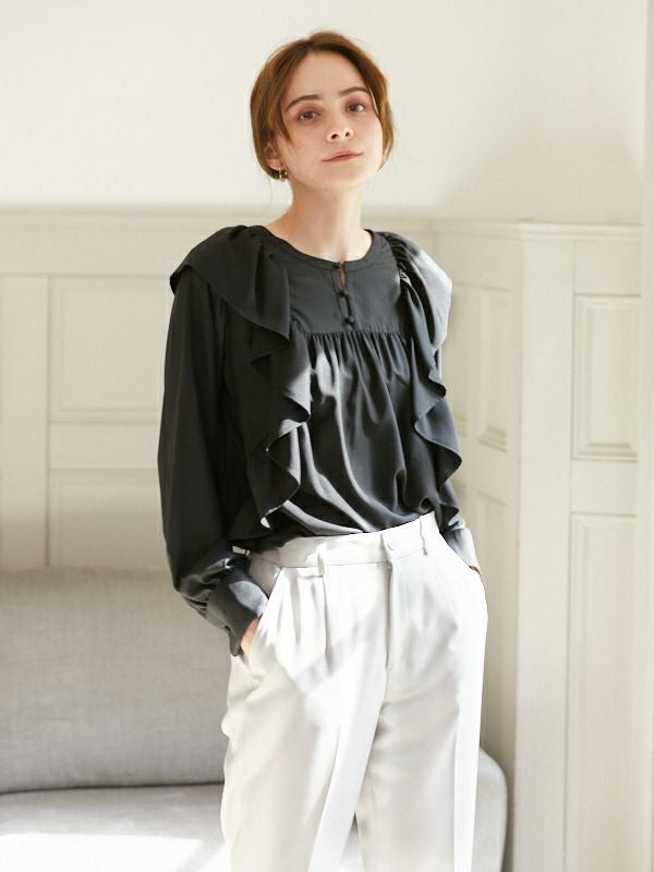 商品コメント:引き続きトレンドのフリルディテールを取り入れたブラウス。