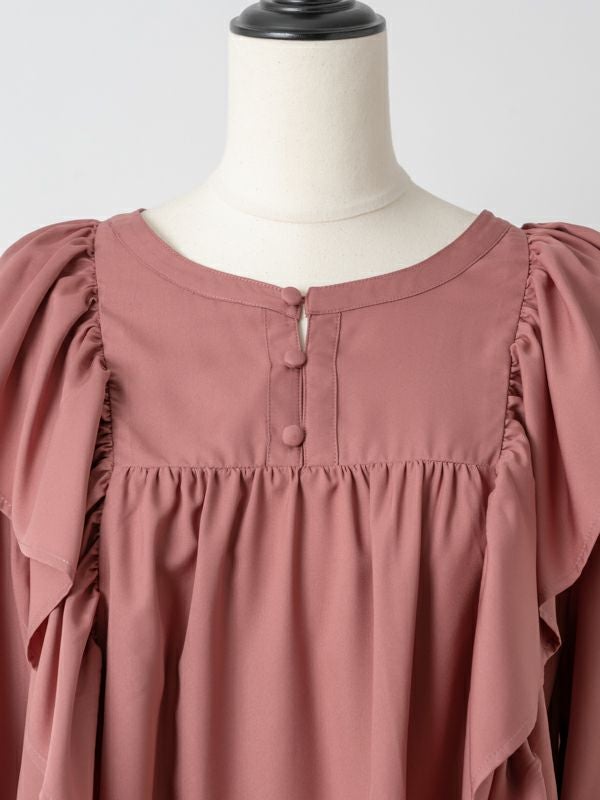 大きめのフリルが女性らしく、肩幅も華奢みえします。