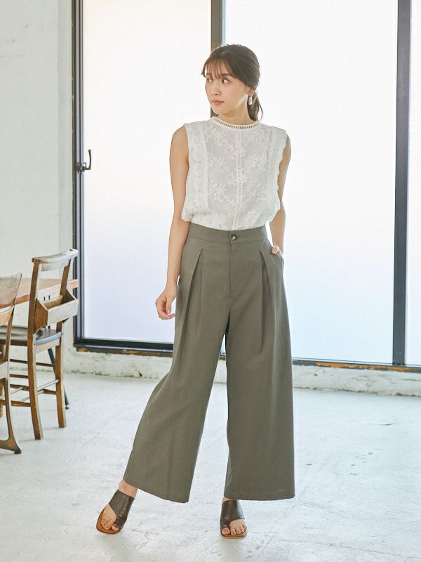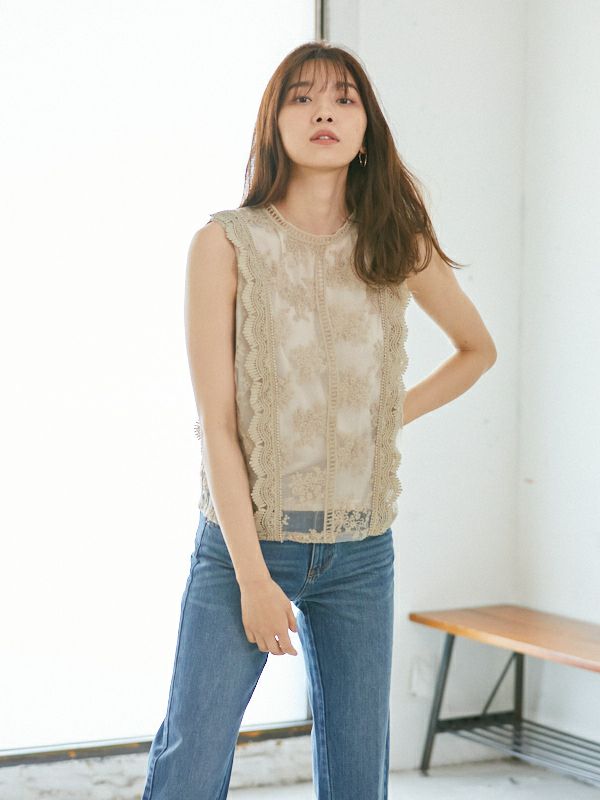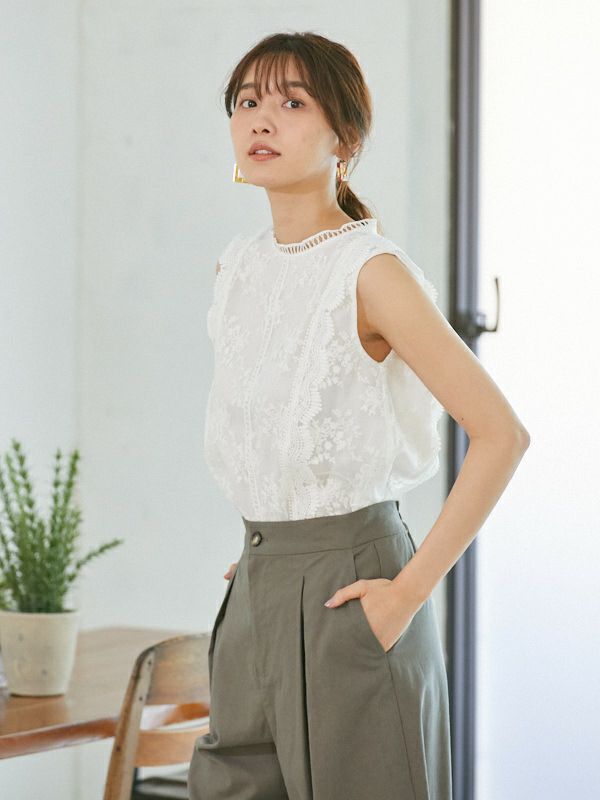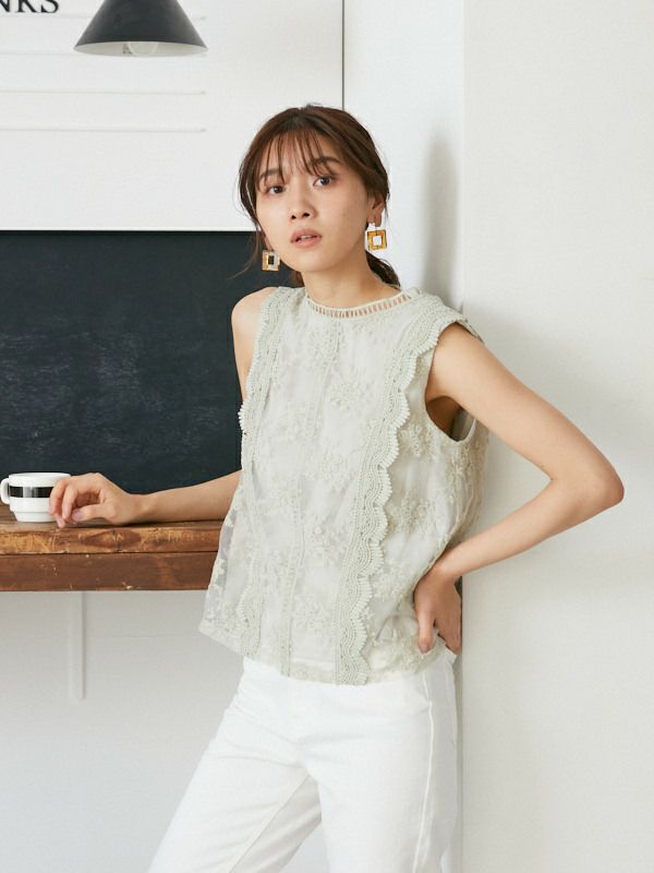 オーガンジー刺繍ノースリブラウス(1R13-1560)