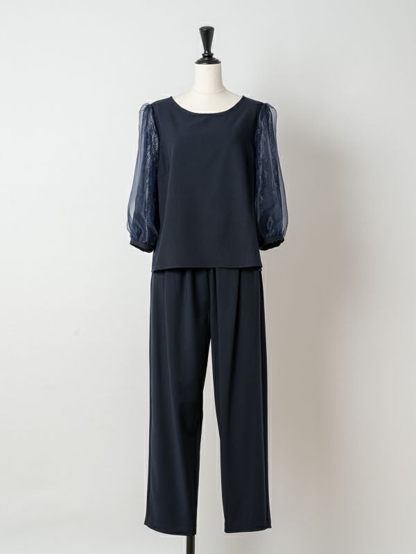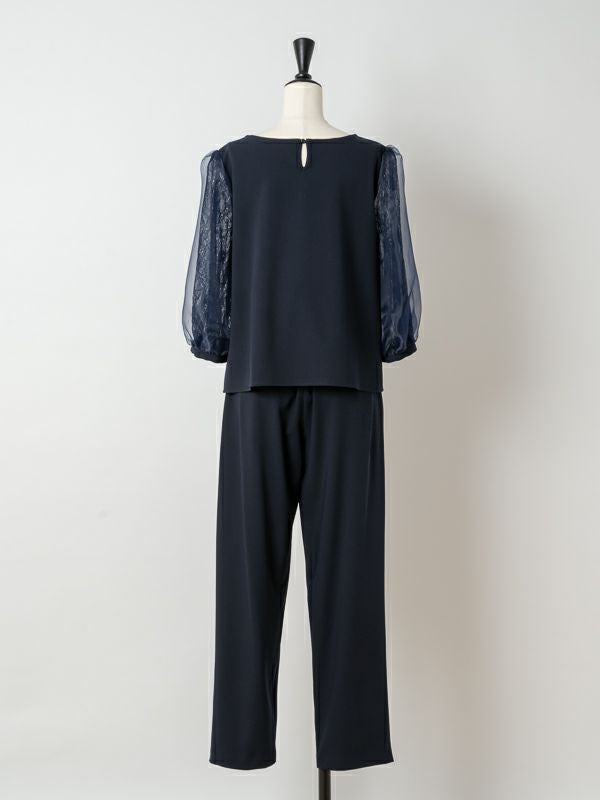 商品コメント:レーススリーブがレディな大人のパンツセットアップドレス。