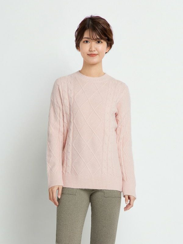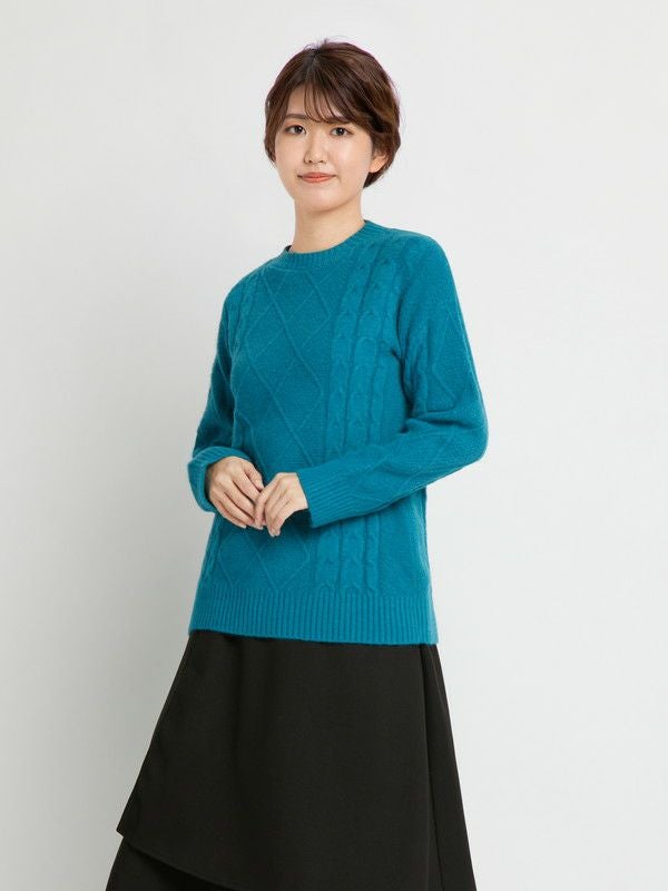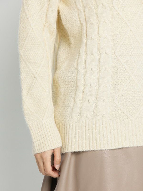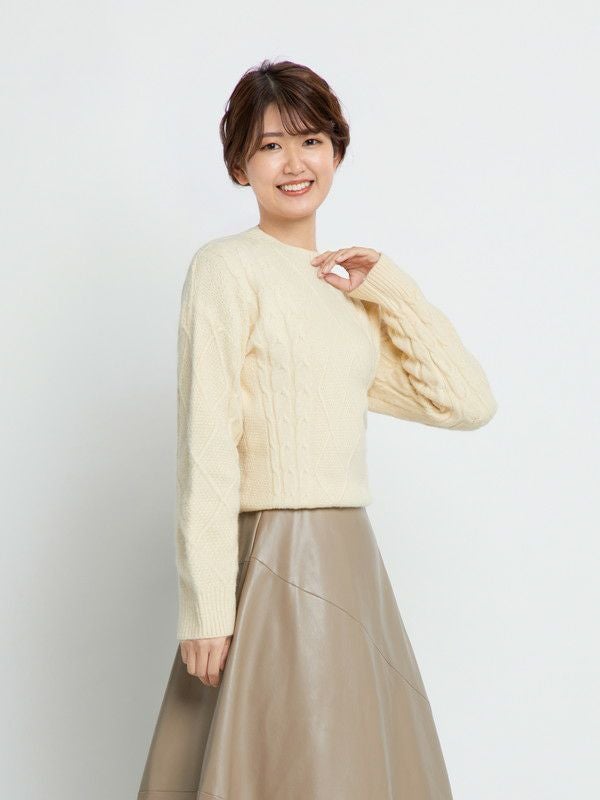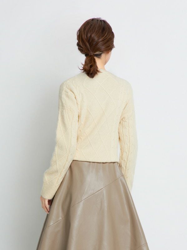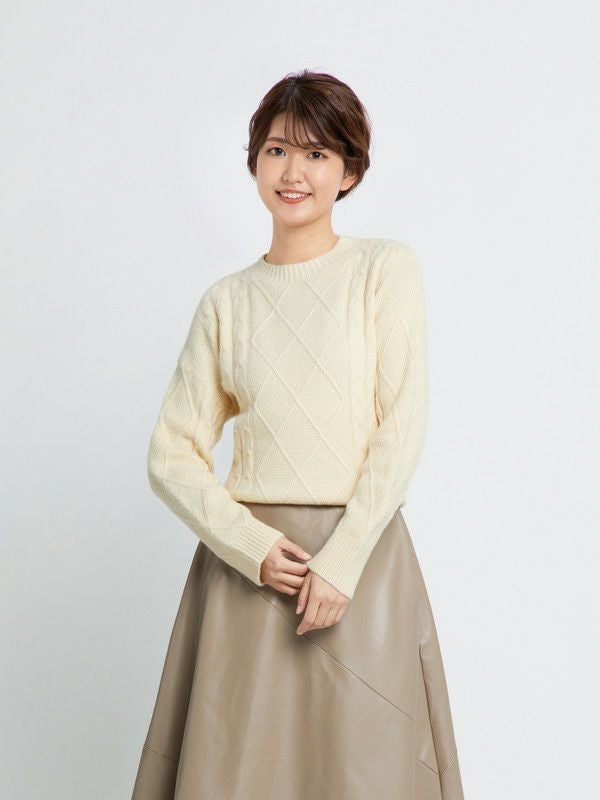 立体感のあるケーブルニットなので、これだけでコーデが決まります。