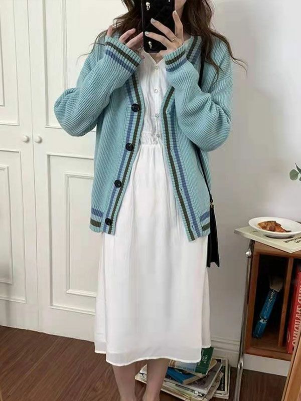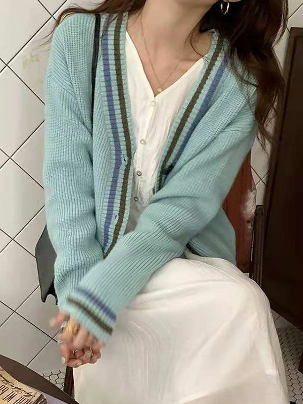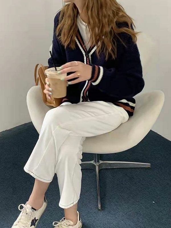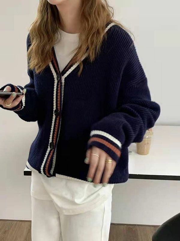 ミドルゲージのVネックカーディガン。
