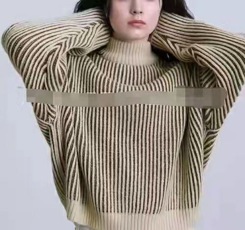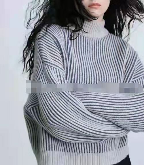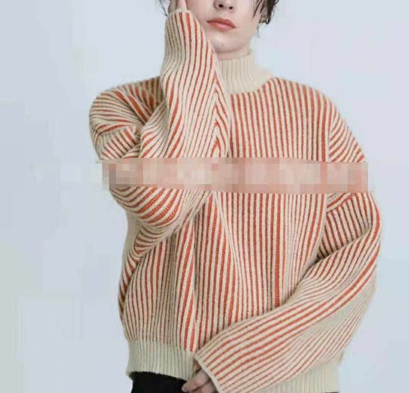 ストライプ見えする配色とモックネックがポイント!