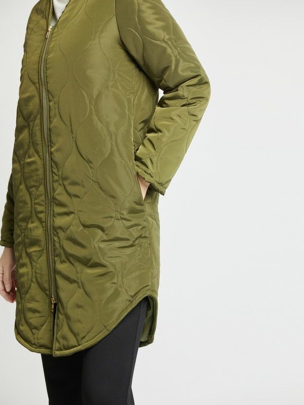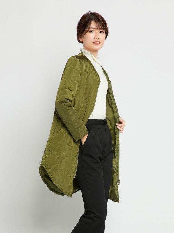 ジャストサイズに仕上げたシルエットが美しいキルティングコート。