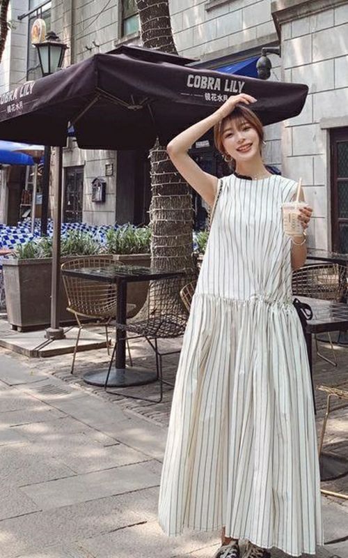 【たっぷりの生地分量でシルエットを作ったストライプワンピース】