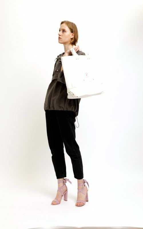 フロントにプリントされた赤い燕がトレードマークとなっているバッグは、大き目のサイズ感。たっぷりとしたマチにより抜群の収納力があります。