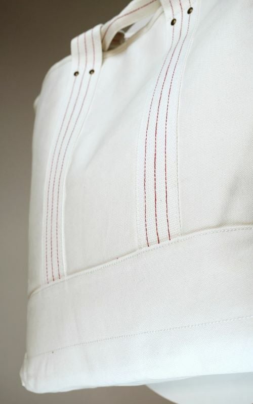 持ち手部分には赤いステッチが3本。デザインアクセントになるとともに、強度を高めデイリーユースにピッタリ。