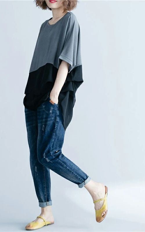 大胆なブロッキングデザインが目を引くカットソー。