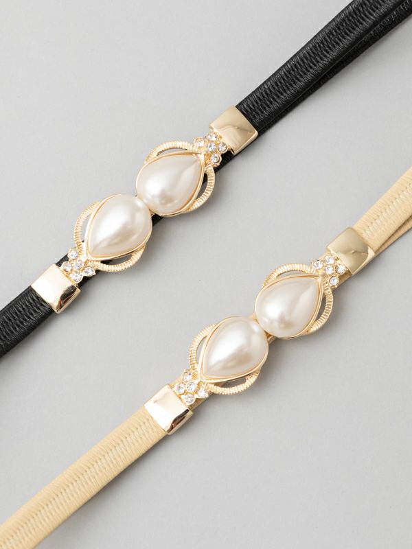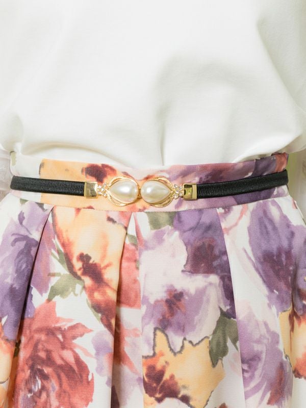 しずくパールモチーフバックルゴムベルト(9R18-BE08)