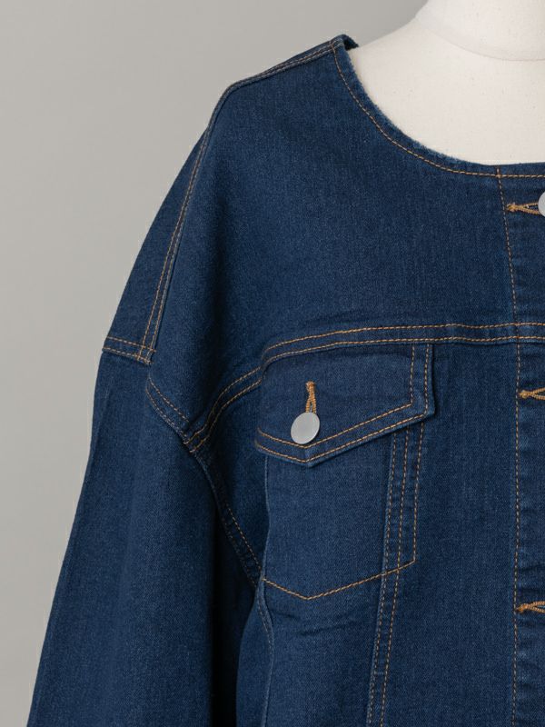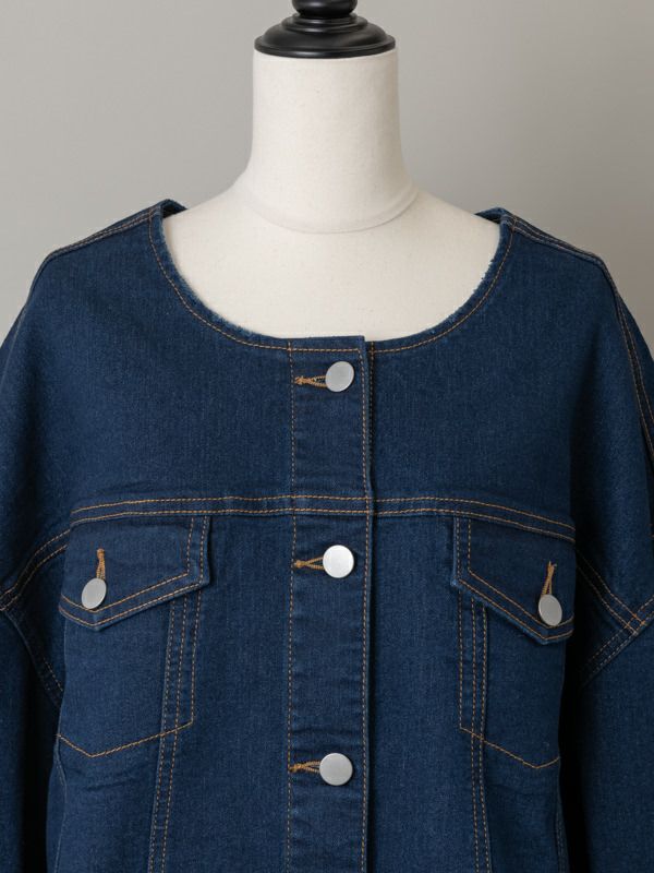 商品コメント:人気のノーカラーデザインのビッグシルエットGジャン。