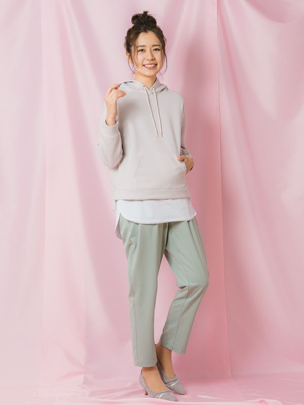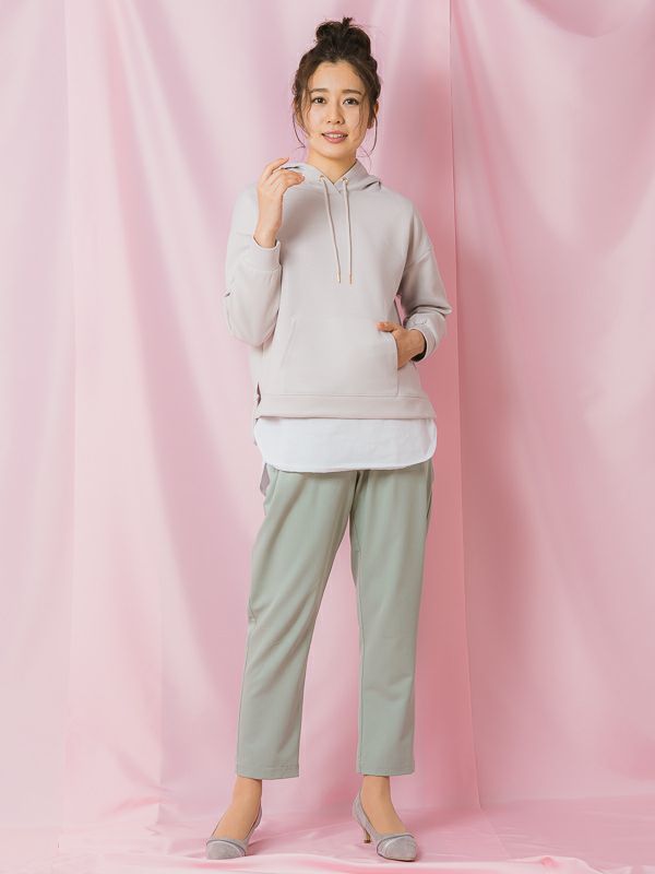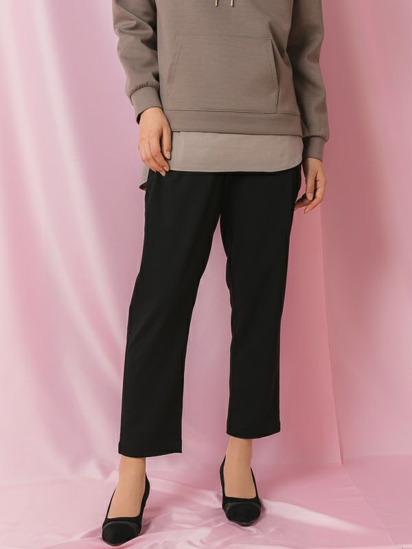 ☆スタッフ身長158cm☆ 普段着用サイズSorM Mサイズの着用で、丁度くるぶしにかかる程の丈感でした。 腰回りにタックが入っているので、ヒップ周りも気になりにくく、 とてもスッキリと見えました◎ ウエストも後ろがゴムなので、履きやすさもあり、 ストーレートなシルエットで脚も綺麗に見えます!! キレイめスタイルにも、カジュアルスタイルにも着回ししやすい、ストレスフリーな パンツだと思います☆