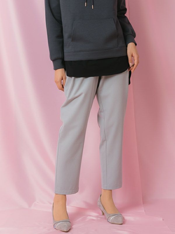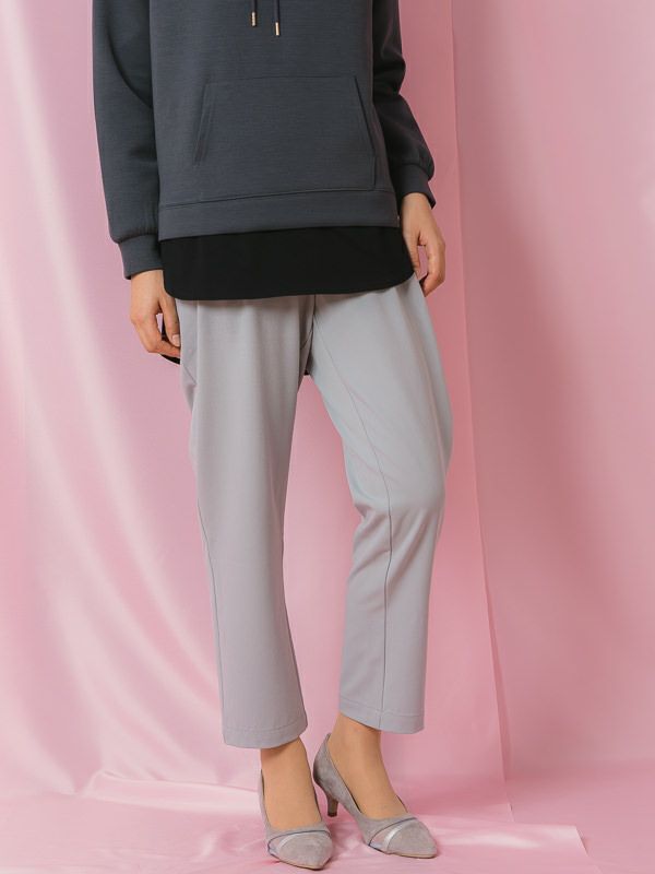 ウエストの後ろはゴム使用で着脱しやすいだけでなく、締め付け感のないリラックスした着心地が魅力です。