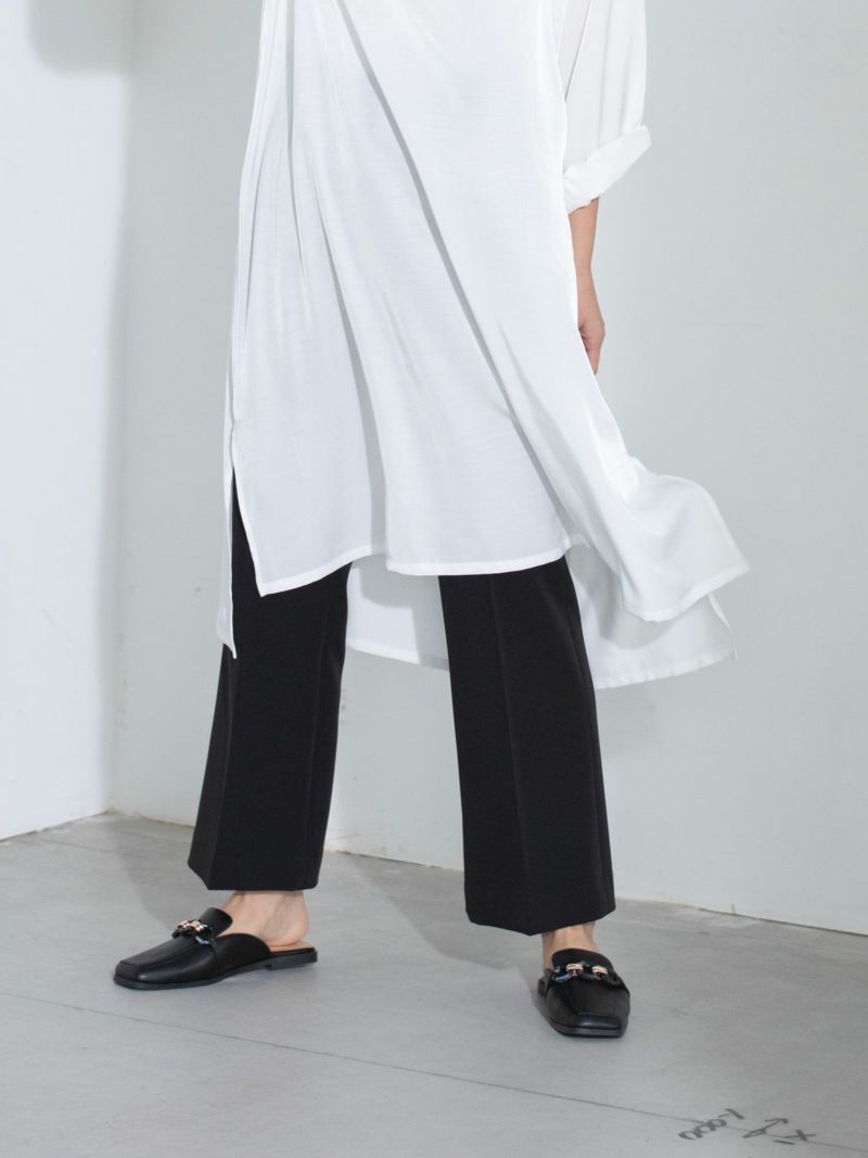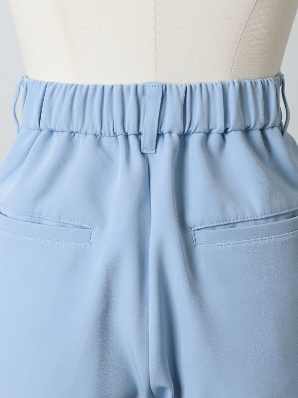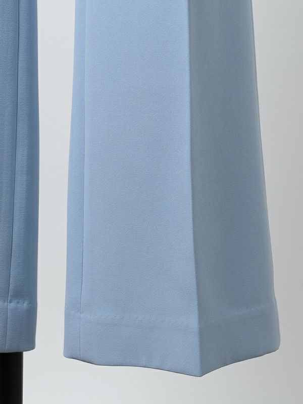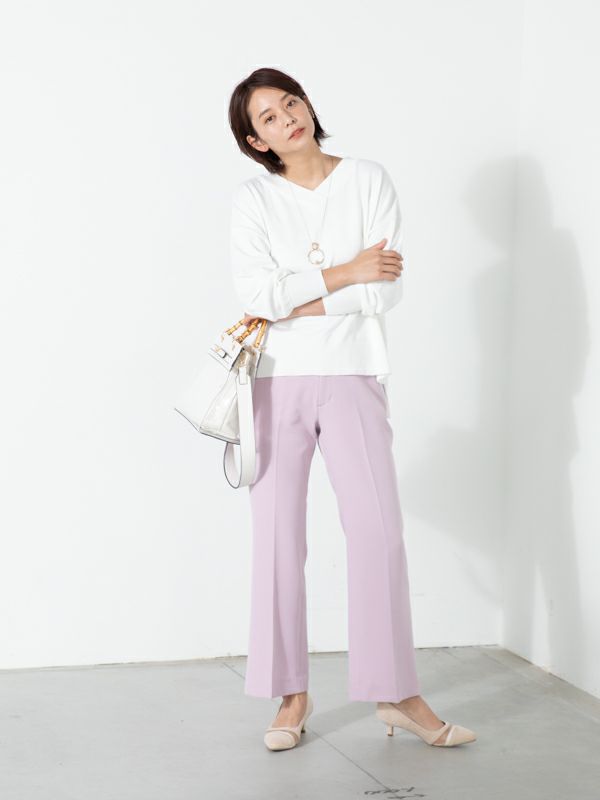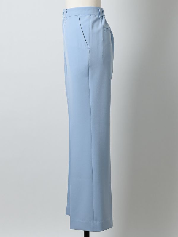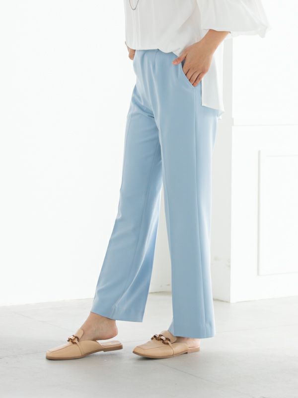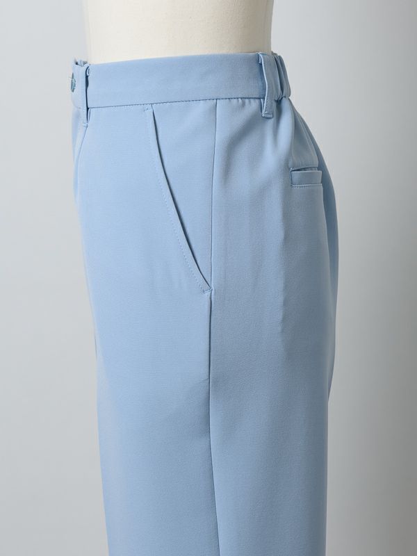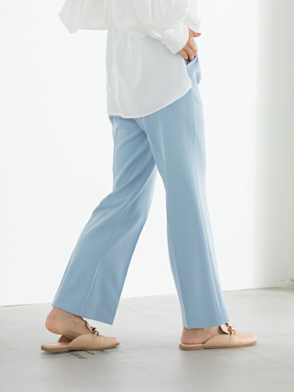 ヒップラインをスリムに見せ、裾に向かって広がるフレアデザインとセンタープレスが美脚と足長シルエットを演出してくれます。