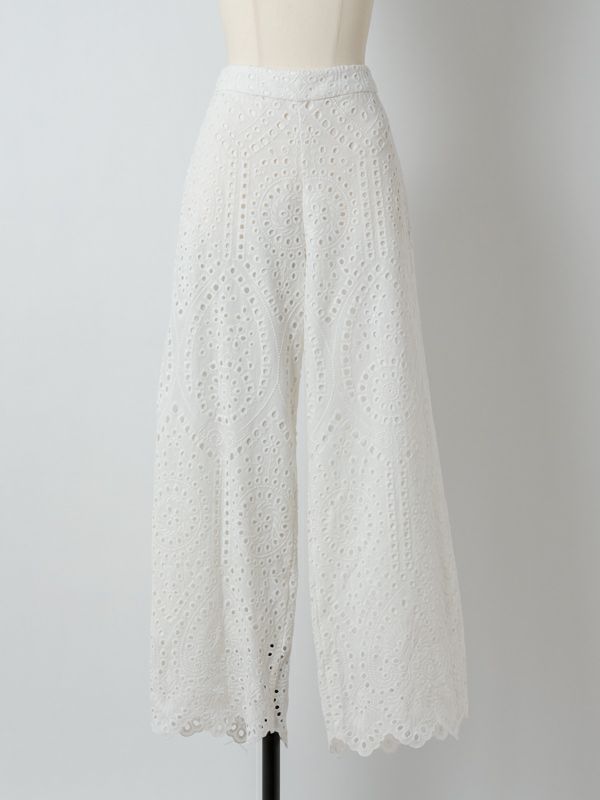 【ナチュリラ 夏号掲載】 コットン刺繍レースフレアパンツ(1R12-03066)