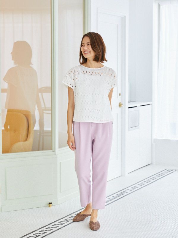 商品コメント:やわらかなストレッチ性のある生地を使用したテーパードパンツ。