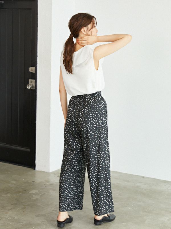 ボタニカルプリントフレアーパンツ(1R12-07073)