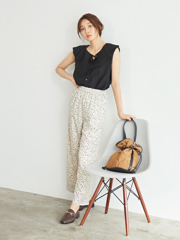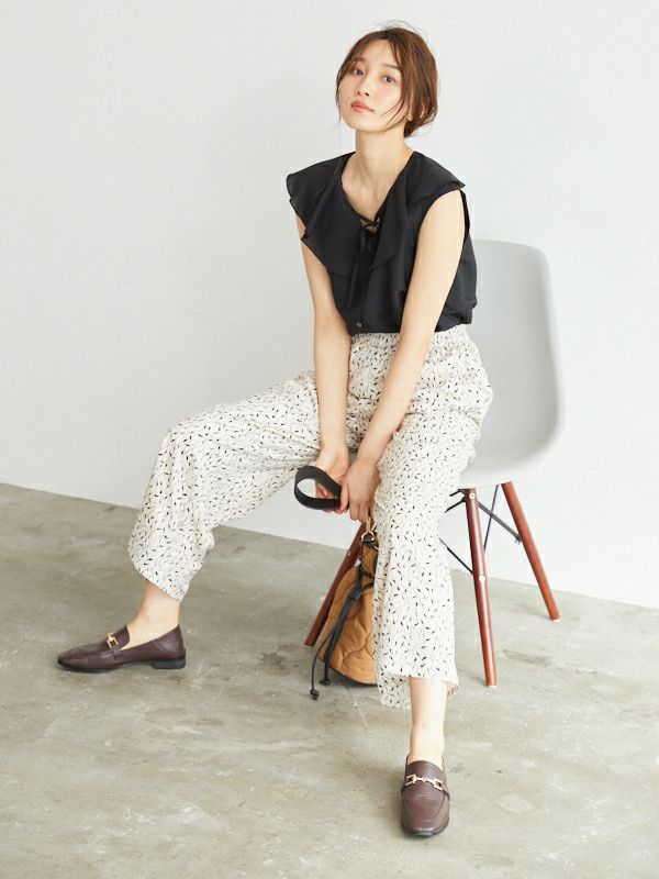シンプルなトップスと合わせていただくとパンツを主役にバランス良く着ていただけます。