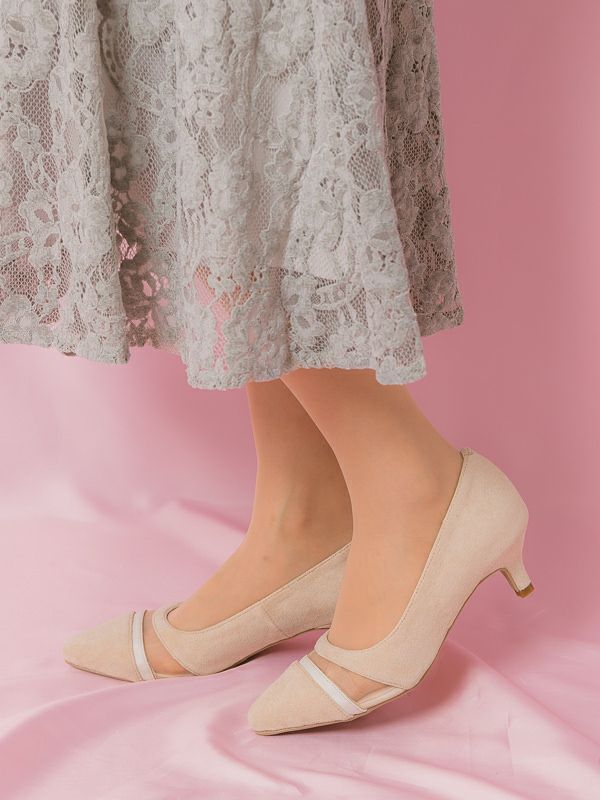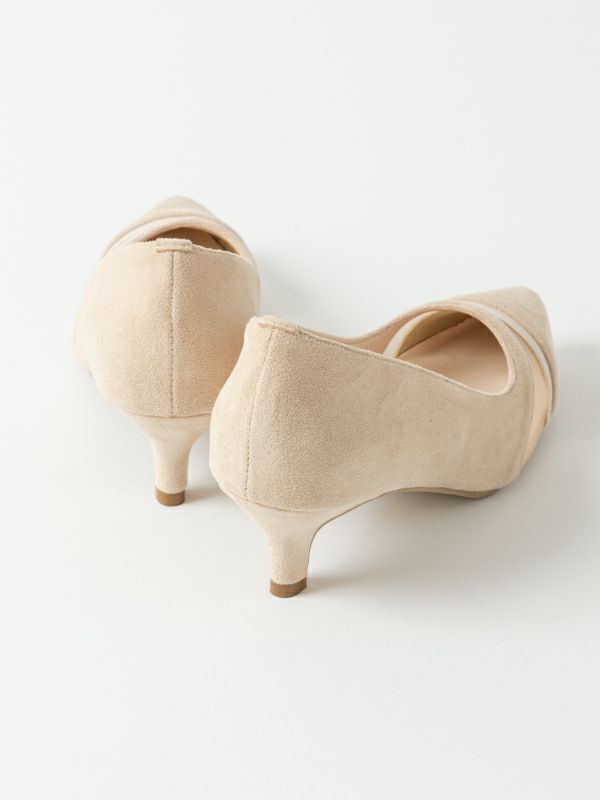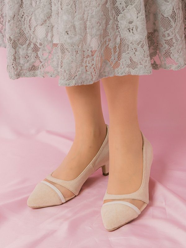 商品コメント:女性らしい、華やかさを演出してくれるチュールコンピパンプス。