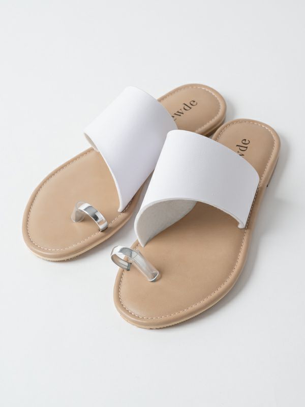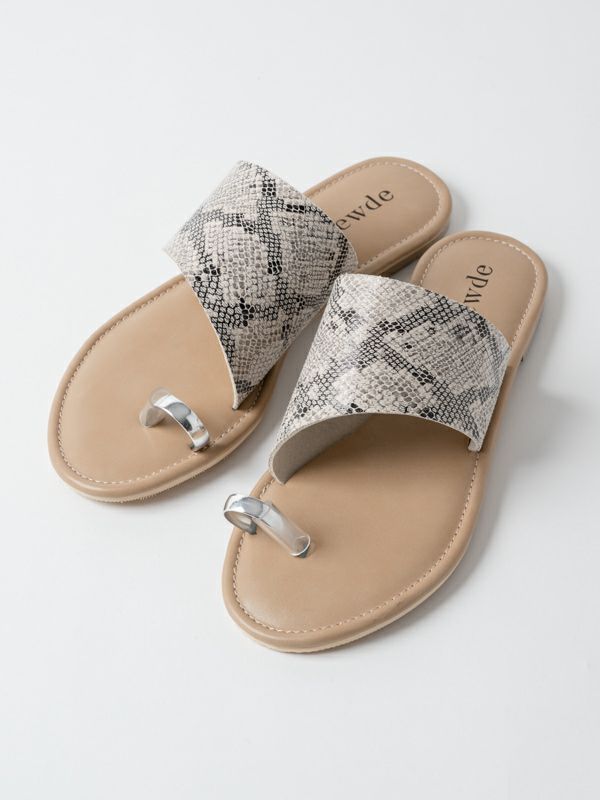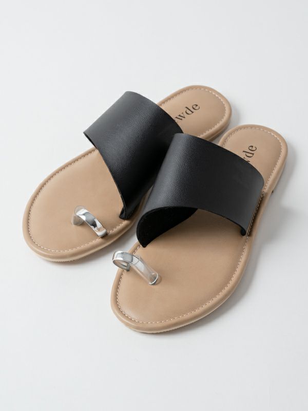 商品コメント:程よい肌見せでヌーディーな足元を演出するトングサンダル。