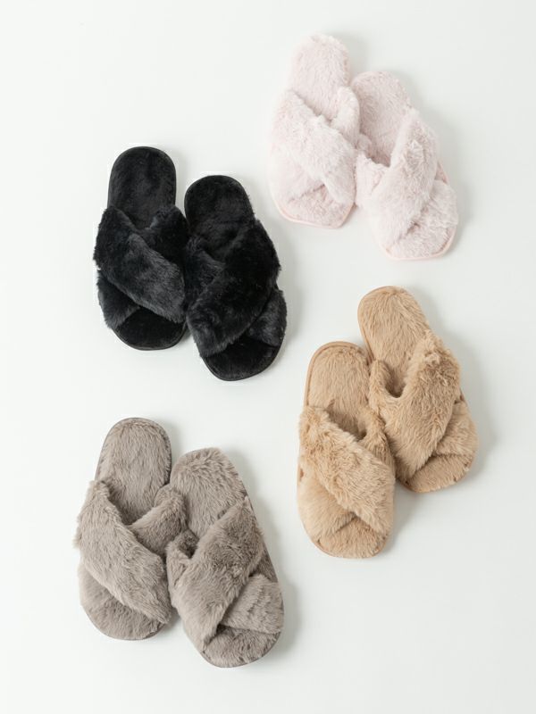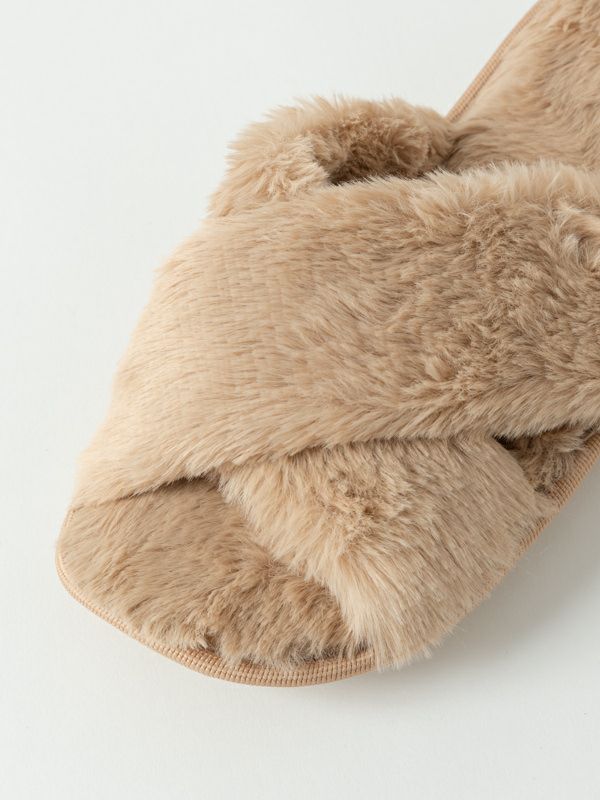 商品コメント:ふわふわと柔らかなエコファーが心地よいルームシューズ。
