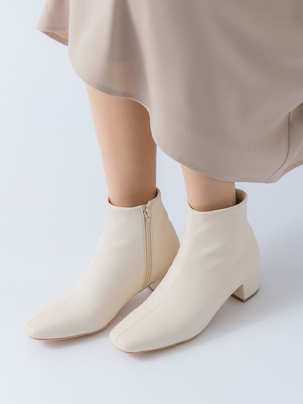 商品コメント:トレンド要素をおさえた、スクエアトゥでショート丈のシンプルなブーティー。