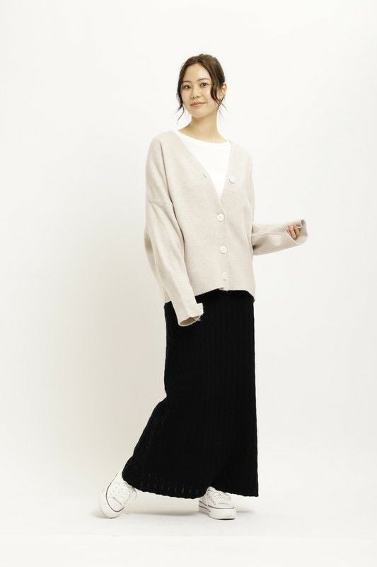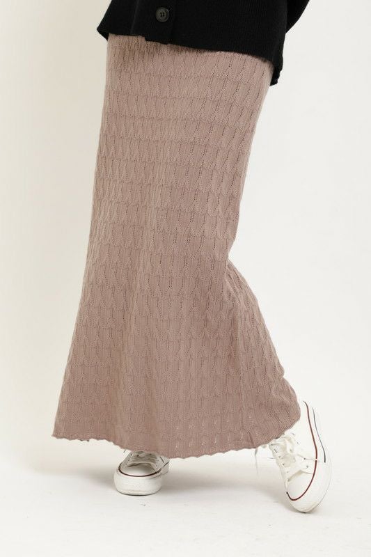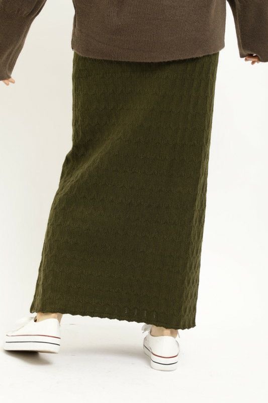 細身&ロングのスカートを伸縮性あるニットで作成。気軽さとトレンドを詰め込んだスカートです。