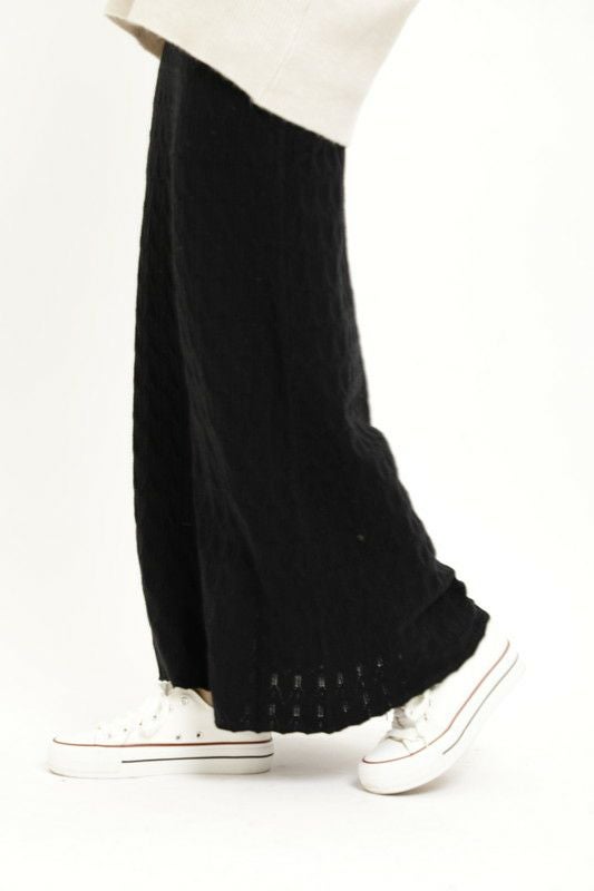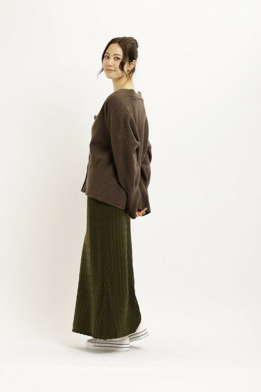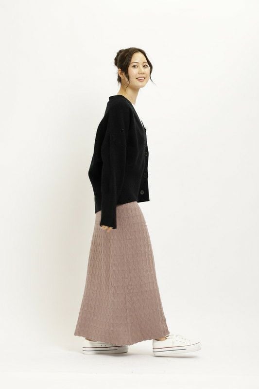 凹凸感ある表面がポイント。ロングスカートでも重く見えません。