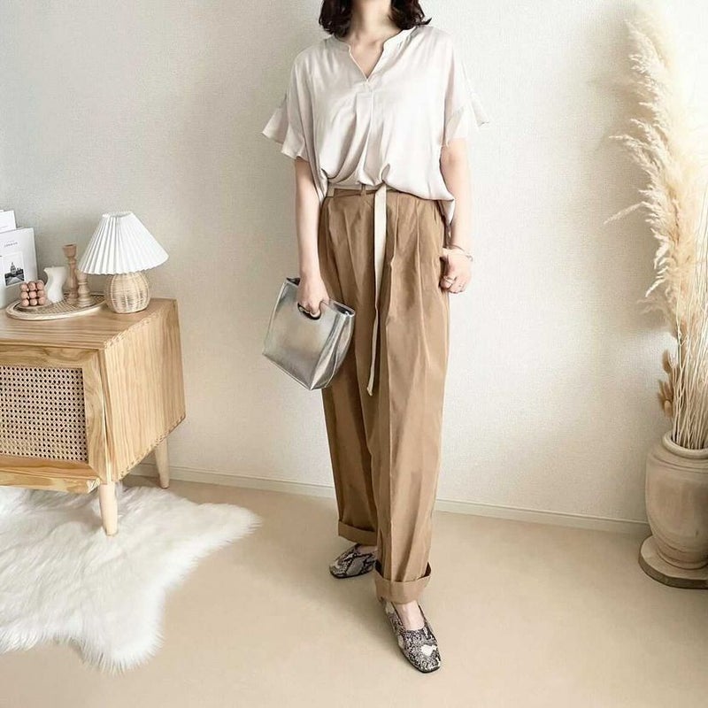 さらっとした生地なので1枚ではもちろん、ジャケットやニットカーディガンなどの中にも重ねやすく、ロングシーズン活躍するブラウスです。