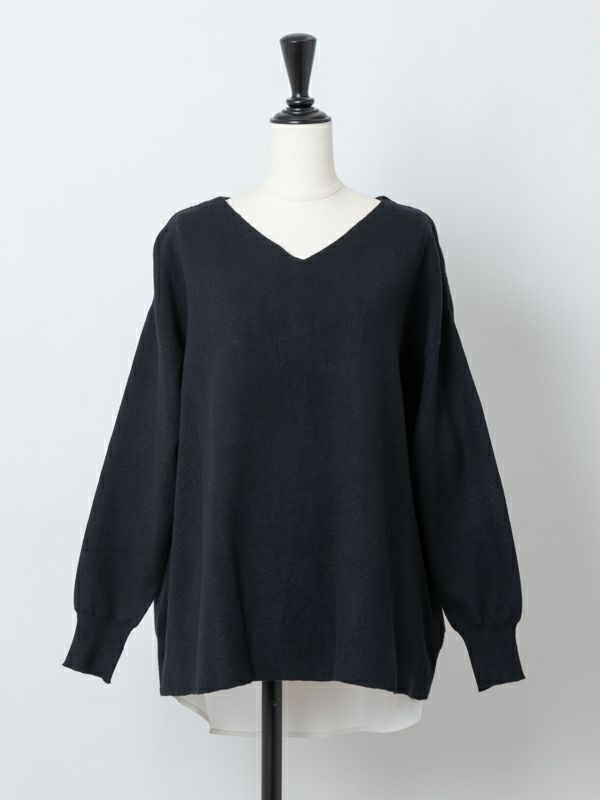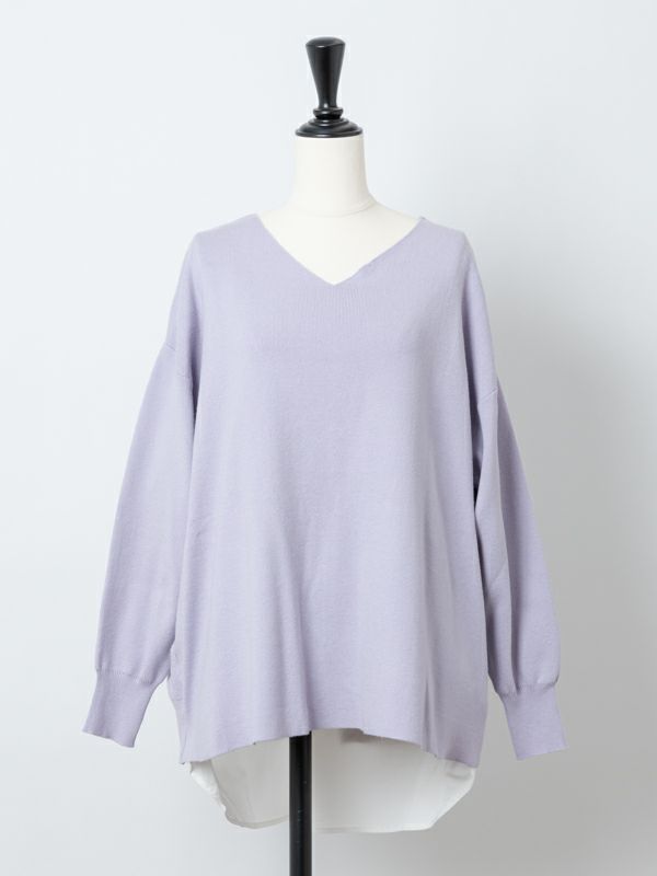 商品コメント:1枚でコーディネートが完成するドッキングデザインMIXニット。