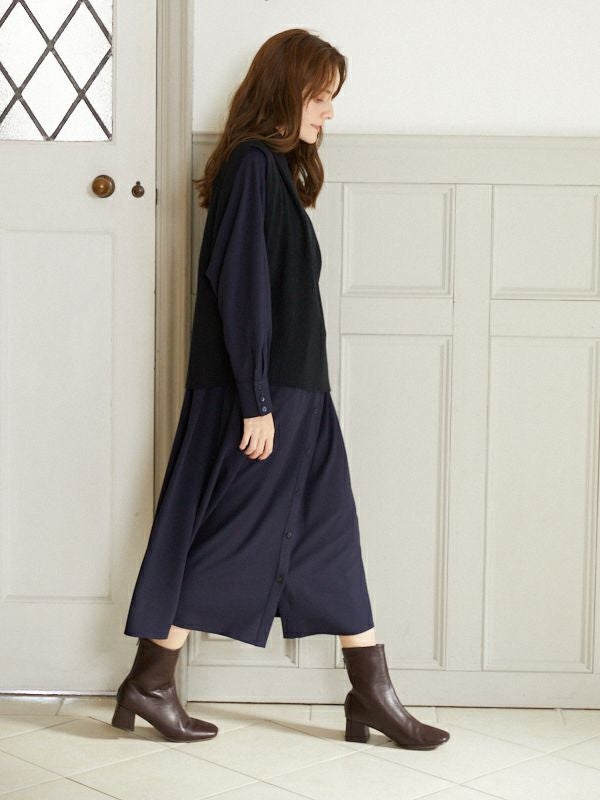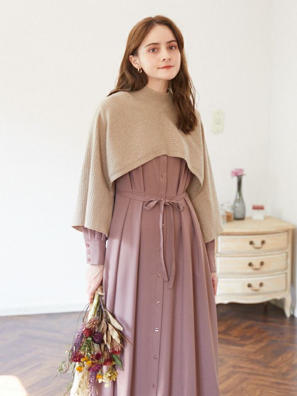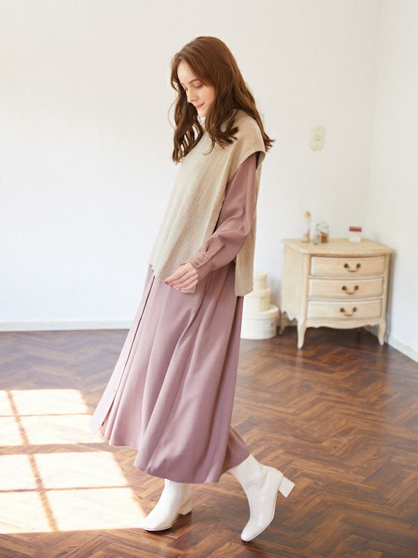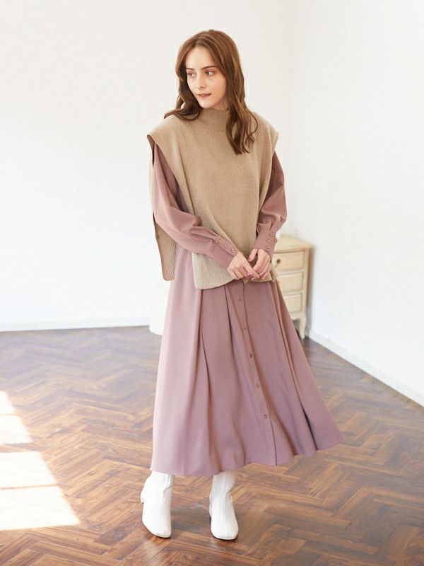 ウエストタックシャツワンピース(1R05-09233)とのレイヤードスタイルもおすすめです。