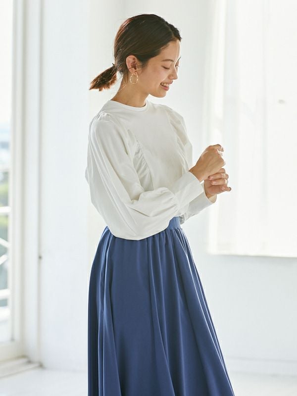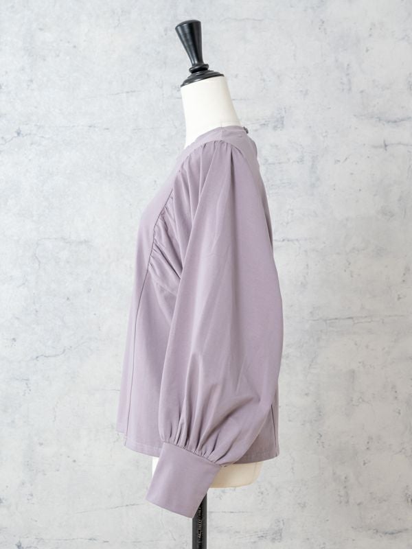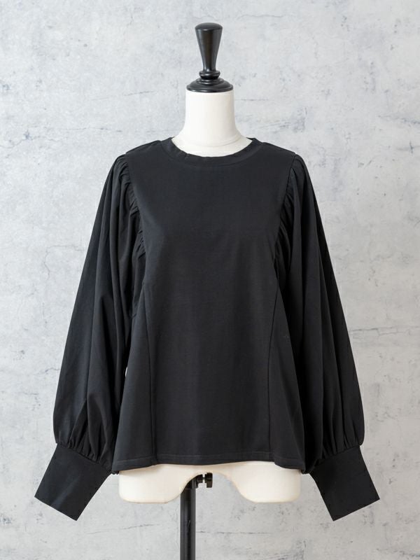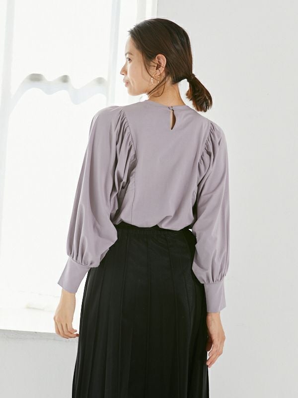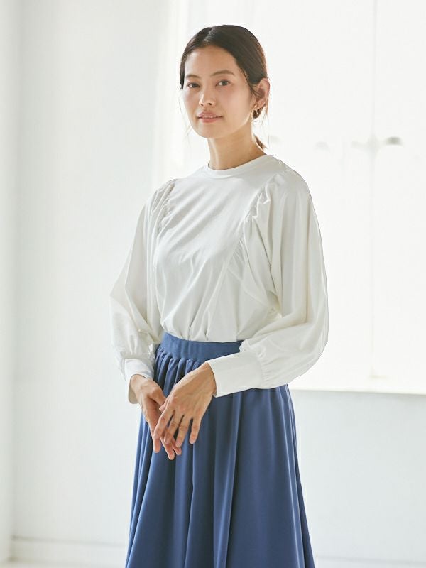 袖のバルーンシルエットが綺麗に出るよう、ギャザー位置やタックの角度を何度も調整したこだわりのデザイン。