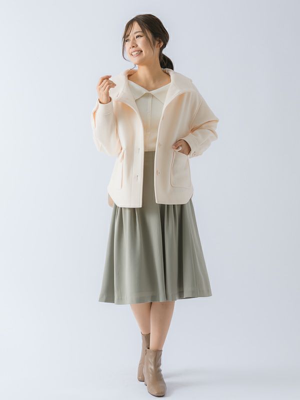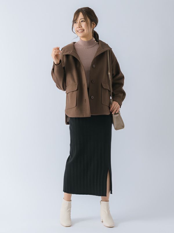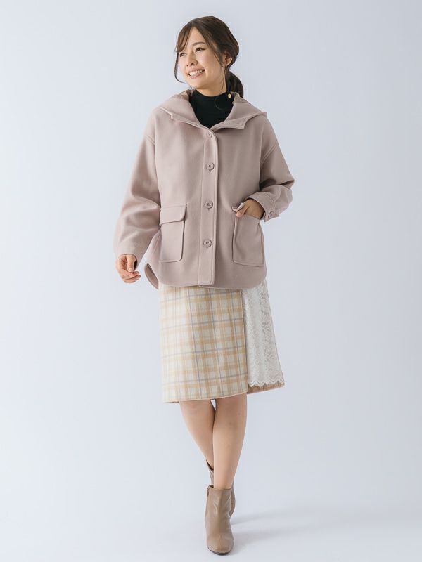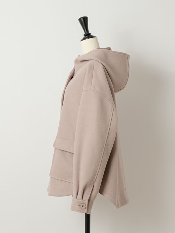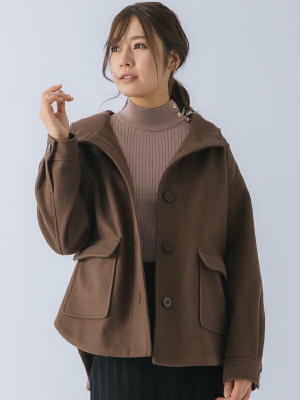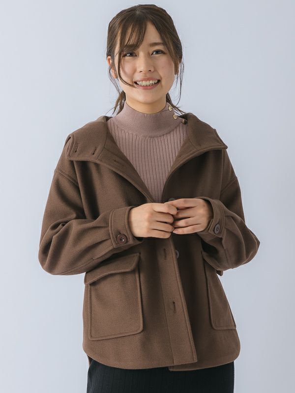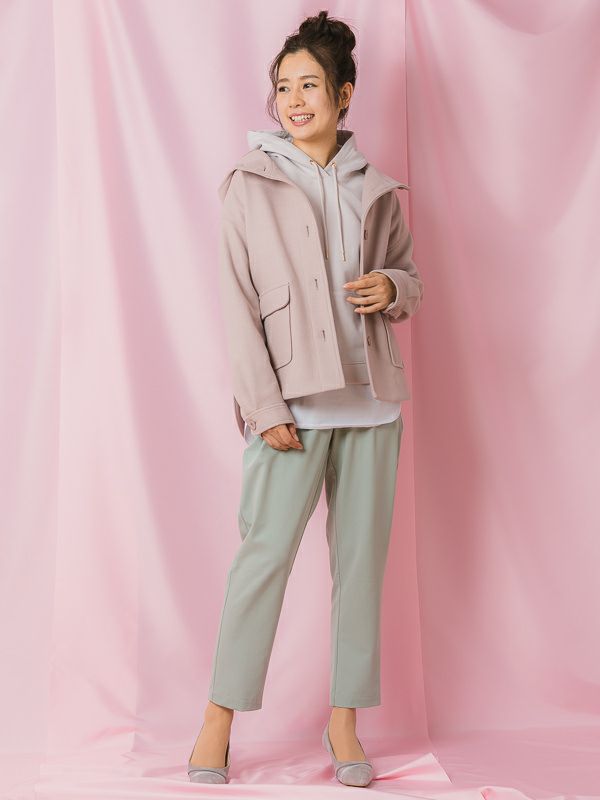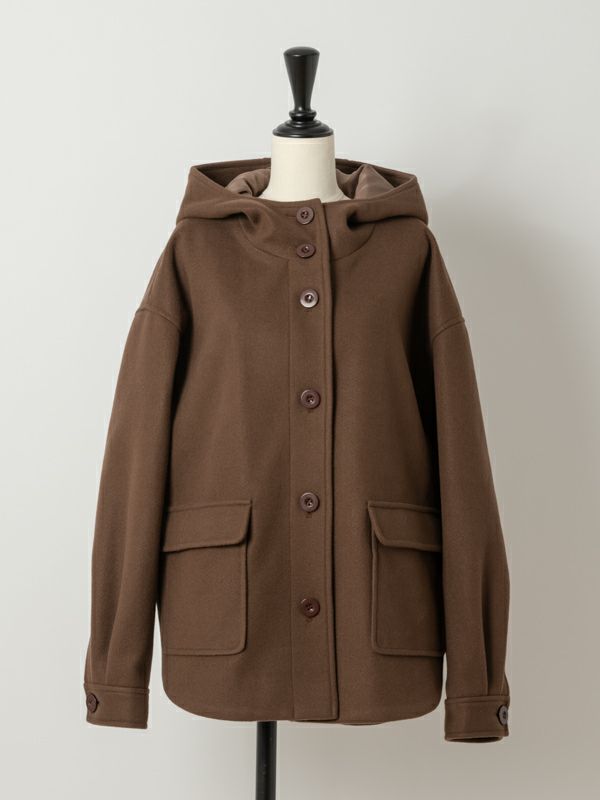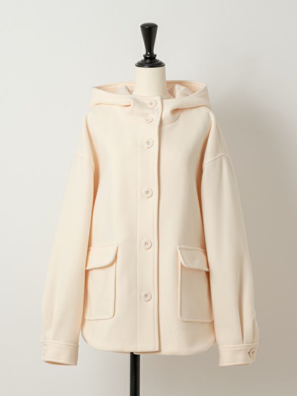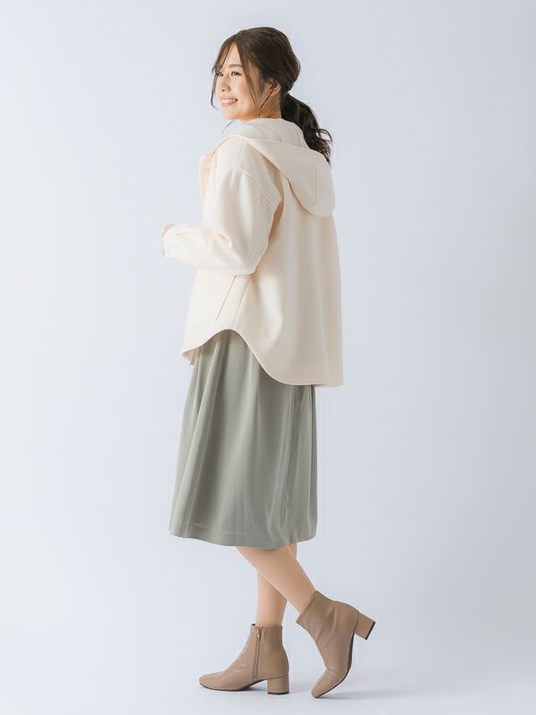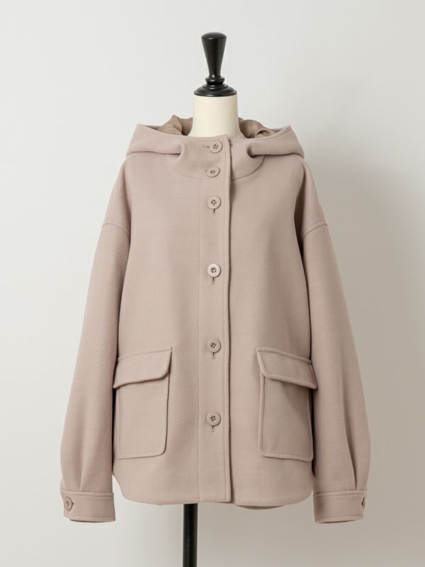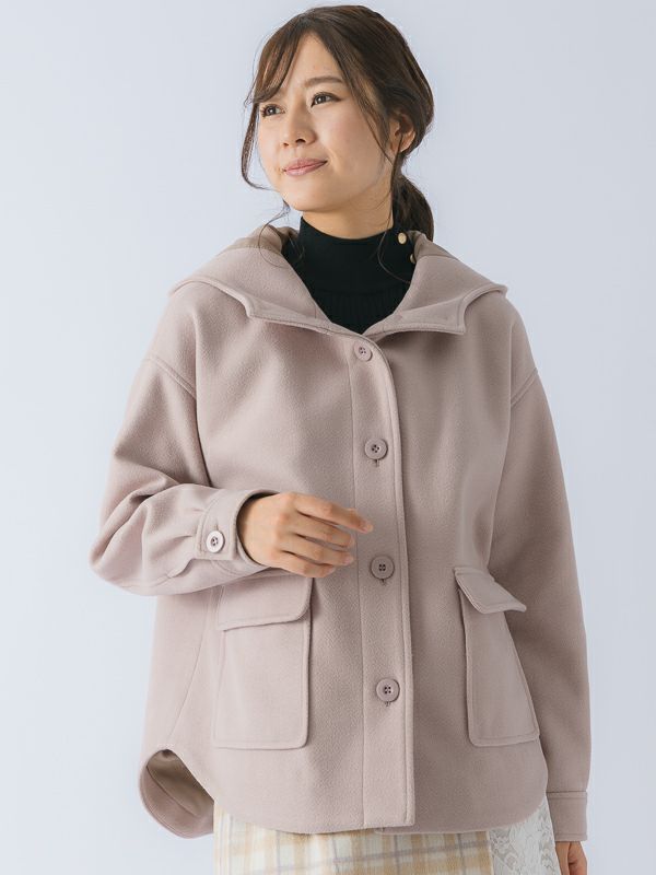 大きめのフードが顔まわりをすっきり見せ、小顔効果も期待できます。