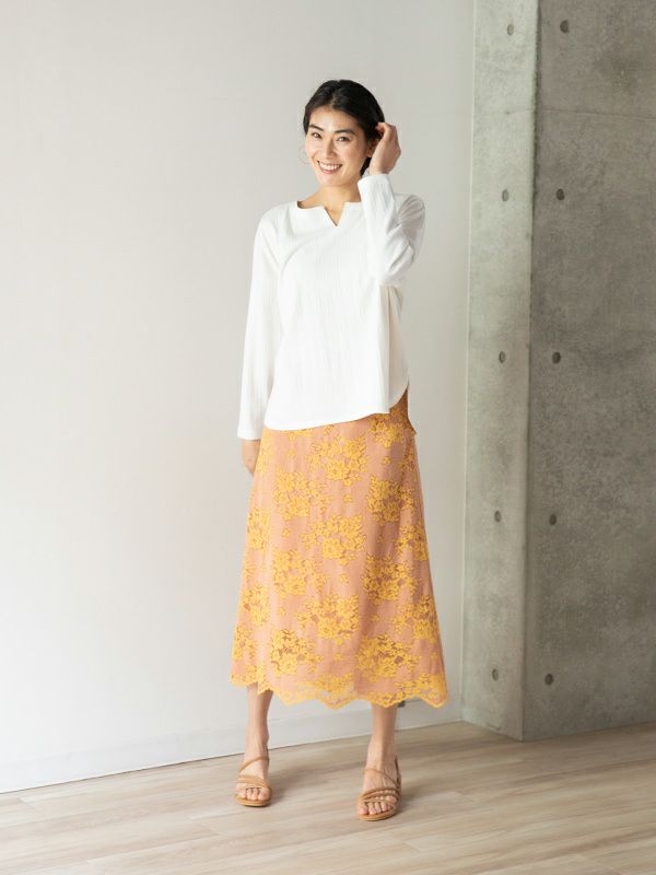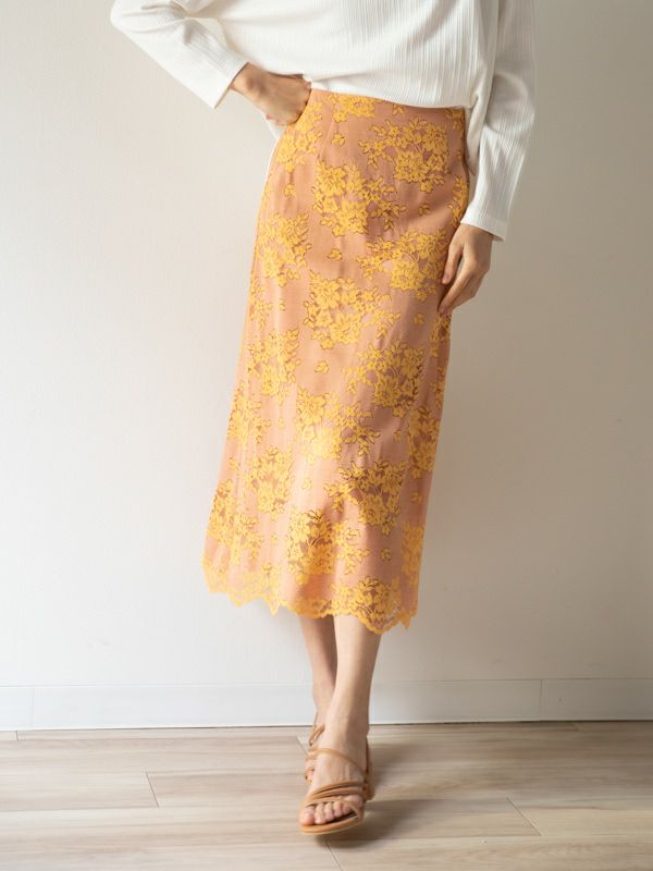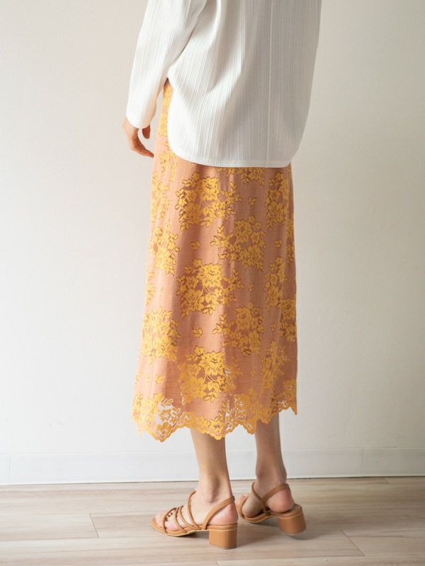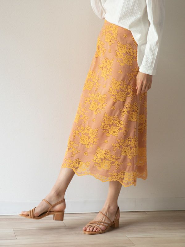 商品コメント:女性らしい繊細な配色レースがオシャレなスカート。
