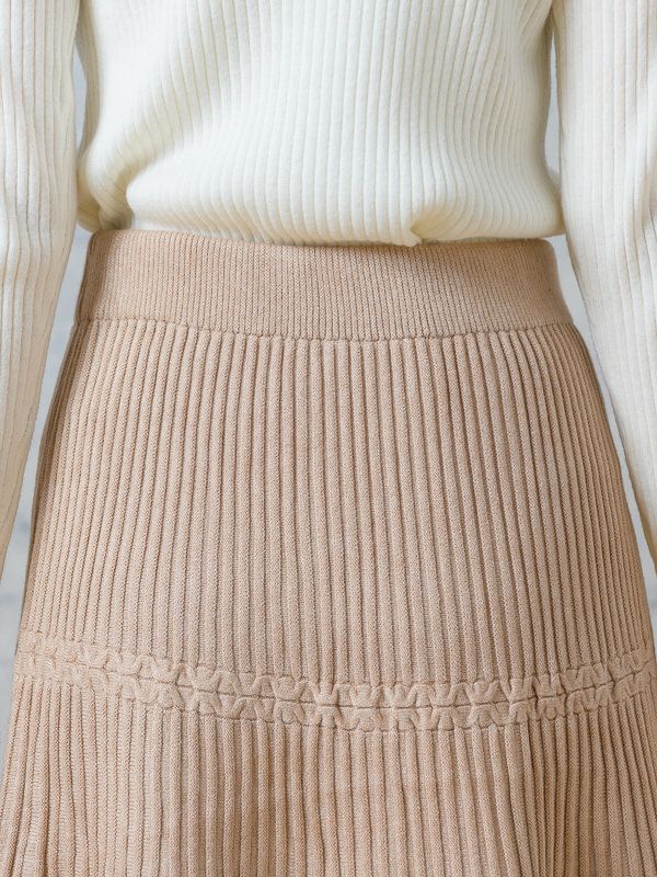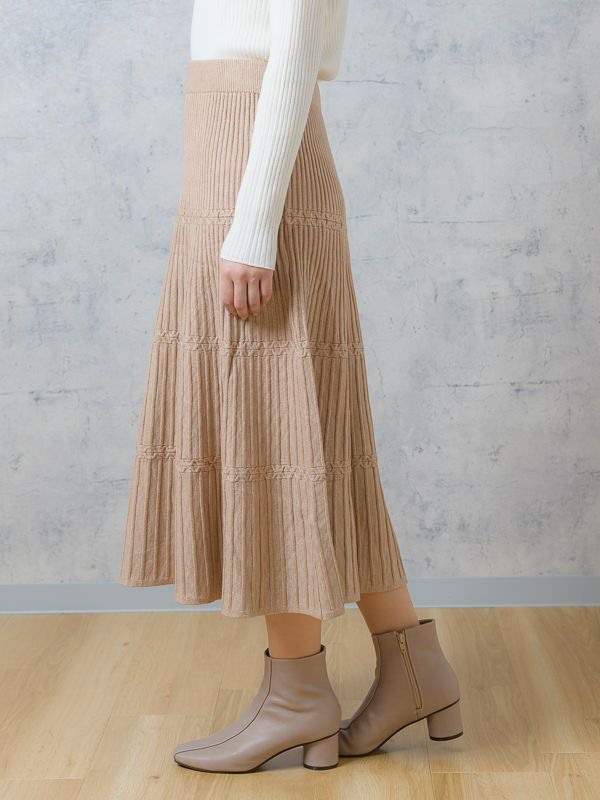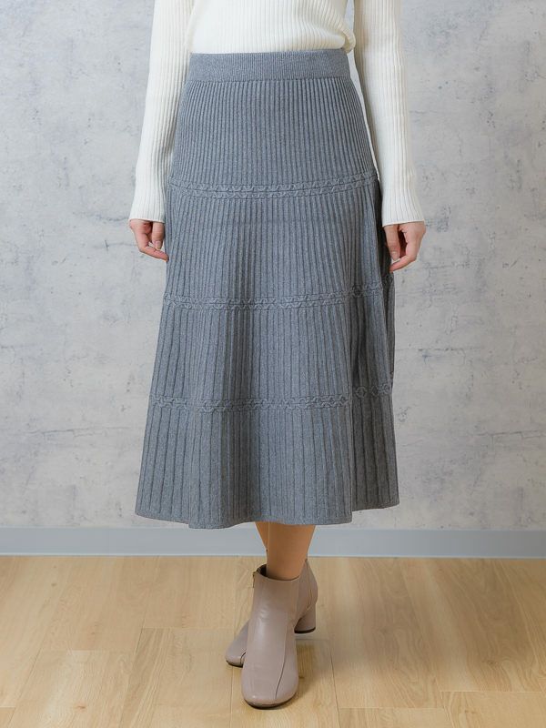 商品コメント:横ケーブル編みの切替がアクセントになったニットスカート。