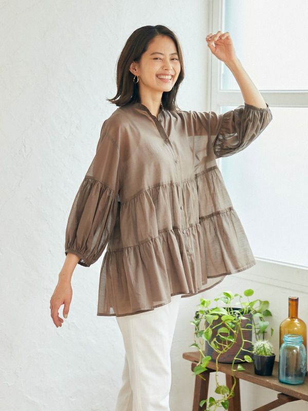 コットン100%の軽やかな着心地と存在感のあるティアードデザインで、コーディネートの主役になるアイテム。