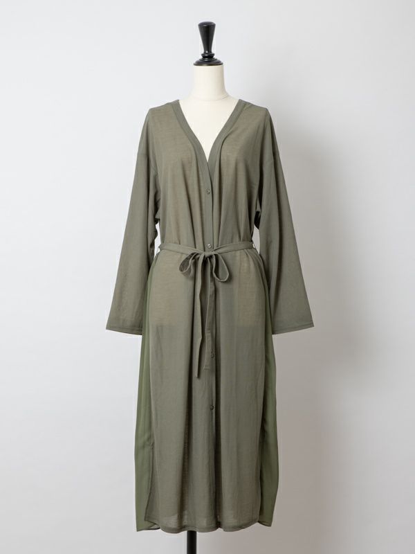 付属の共布ベルトでウエストマークしてワンピース風に着用するのもおすすめです。