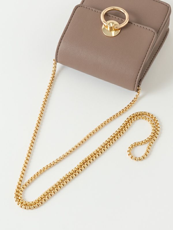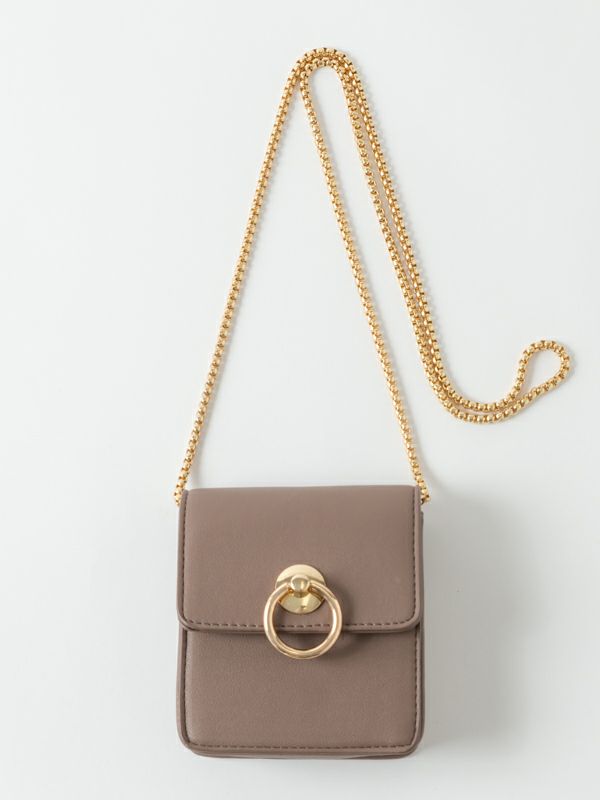 正面の金具を持てば開け閉めがスムーズな上に、付属のチェーンを外すこともできるので、ポーチとしても使えます。