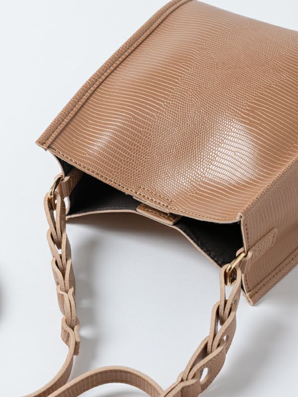 飽きのこないプレーンな無地とトレンド感のあるリザード柄の2種類、4色をご用意。