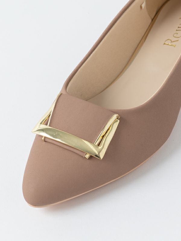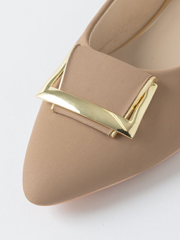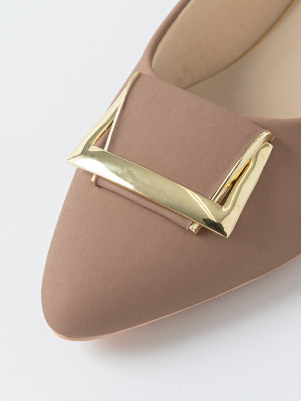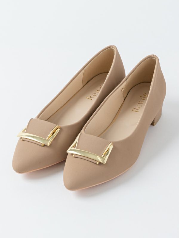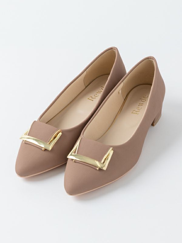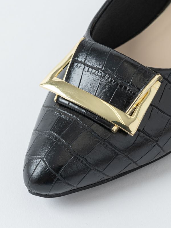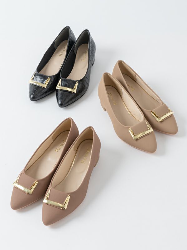 商品コメント:スクエア型のゴールドバックルが存在感のあるフェミニンなフラットシューズ。