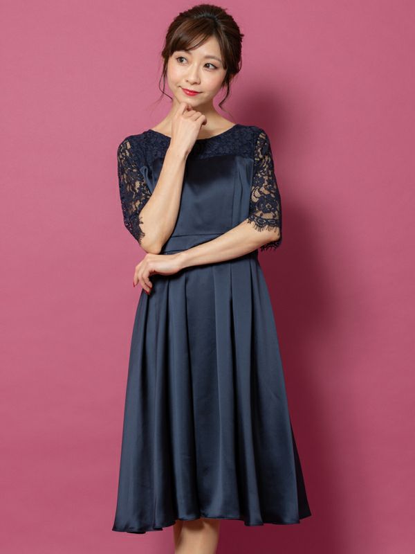 商品コメント:ウエストリボン付の袖レースドレスです♪