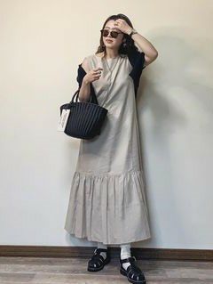 リネン混ノースリティアードワンピース(1R05-8310804)